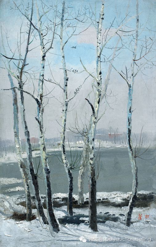 《北京.雪》之雪表现色彩与意境,取源于西方艺术精蕴;其树干枝桠则表现造型与精神,更多是中国艺术之追寻。以斑驳细碎的笔触点染出枝桠的粗糙质感,勾勒其曲折清奇、疏朗伶伫之形态。树干前后错综,表现了空间之深邃、地势之起伏。冬雪与寒枝,在中国诗词有独特的象征隐喻。